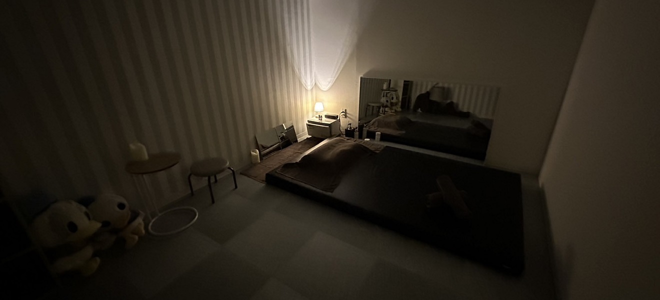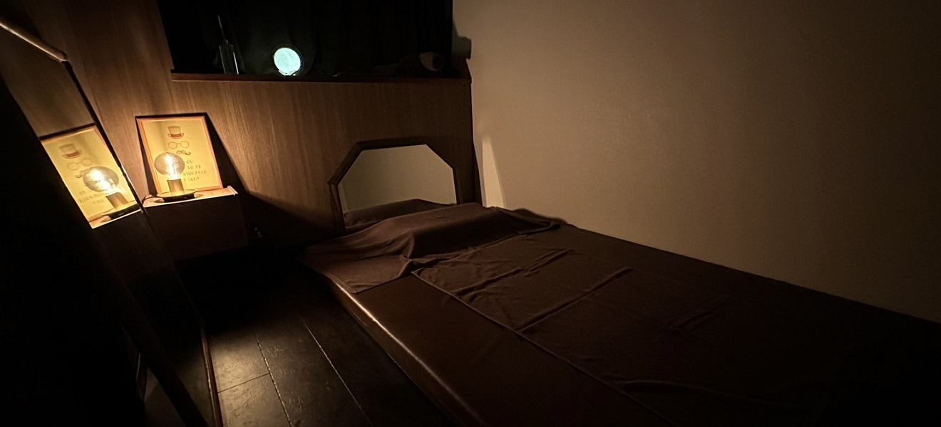 マツ 【結局バリが落ち着きます】 バリ風の木目の壁と、和風な天井で仕上げた「マツ」ルーム。ちょっとこの部屋狭め?と感じましたか?故意です。だって、狭い方が近くにいれるよね?納得いただき幸いです。